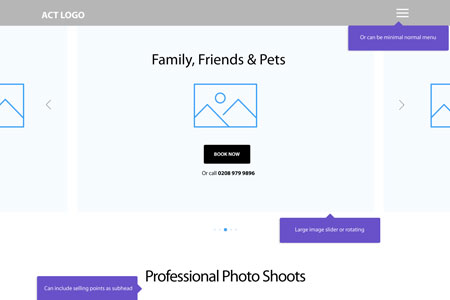 UX design and research, UI design, web design, frontend development, consultancy and branding to produce targeted CMS responsive brochure sites, multiple landing pages plus multiple mock-ups and prototypes for rapid design/development iteration for high-tech photography agency. Utilised WordPress (integration and multiple bespoke theme development), Bootstrap, HTML5, CSS3, PHP, MySQL, video and multimedia integration, animation, dynamic sliders, wireframes, Photoshop, Illustrator. Rebranded UI development for the consultancy to meet business requirements. Multiple landing pages covering differing promotions and products. The site features theme switching capability allowing the site to run multiple themes concurrently, allowing it to create different connotations for different occasions whilst remaining within one site base for a more integrated user experience.