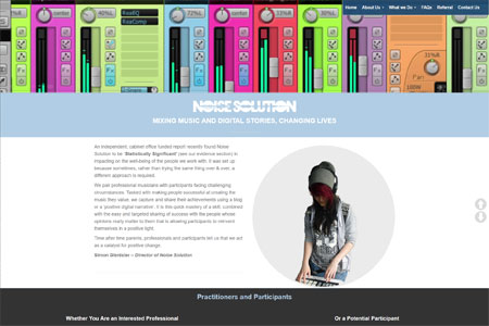 UX design and research, UI design, Web design, frontend development, backend integration, consultancy and branding to create a fully responsive branded site for a music-driven occupational therapy organisation, pitched at a dual target audience. Cross browser testing, security and speed delivery implementation/trouble-shooting. Features a user-friendly CMS, embedded video and audio, responsive video background, sliders and intuitive call-to-actions to encourage user uptake. Produced with bespoke WordPress theme design, WordPress architecture, HTML5, CSS3, JavaScript, jQuery, PHP, MySQL, technical writing, Photoshop, Illustrator, wireframes, prototypes.